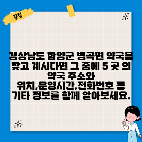 경상남도 함양군 병곡면 약국을 찾고 계시다면 그 중에 5 곳 의 약국 주소와 위치,운영시간,전화번호 등 기타 정보를 함께 알아보세요.