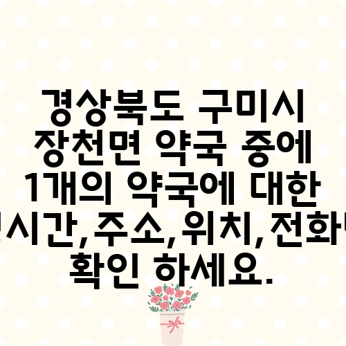 경상북도 구미시 장천면 약국 중에 1개의 약국에 대한 운영시간,주소,위치,전화번호 확인 하세요.