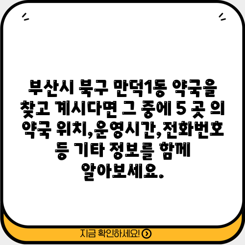 부산시 북구 만덕1동 약국을 찾고 계시다면 그 중에 5 곳 의 약국 위치,운영시간,전화번호 등 기타 정보를 함께 알아보세요.