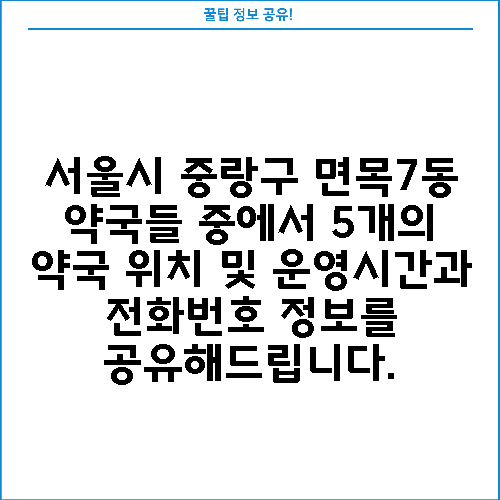 서울시 중랑구 면목7동 약국들 중에서 5개의 약국 위치 및 운영시간과 전화번호 정보를 공유해드립니다.