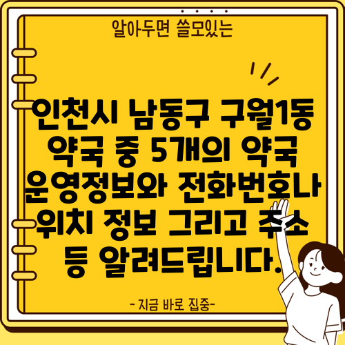 인천시 남동구 구월1동 약국 중 5개의 약국 운영정보와 전화번호나 위치 정보 그리고 주소 등 알려드립니다.