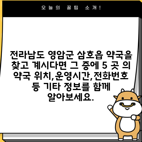 전라남도 영암군 삼호읍 약국을 찾고 계시다면 그 중에 5 곳 의 약국 위치,운영시간,전화번호 등 기타 정보를 함께 알아보세요.