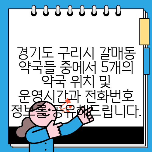 경기도 구리시 갈매동 약국들 중에서 5개의 약국 위치 및 운영시간과 전화번호 정보를 공유해드립니다.