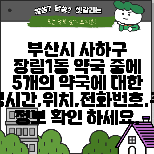 부산시 사하구 장림1동 약국 중에 5개의 약국에 대한 운영시간,위치,전화번호,주소 정보 확인 하세요.