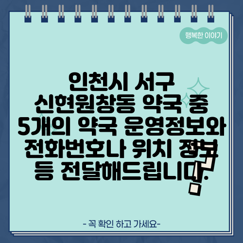 인천시 서구 신현원창동 약국 중 5개의 약국 운영정보와 전화번호나 위치 정보 등 전달해드립니다.
