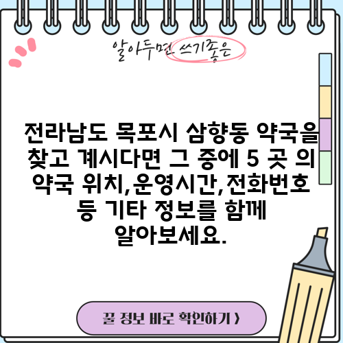 전라남도 목포시 삼향동 약국을 찾고 계시다면 그 중에 5 곳 의 약국 위치,운영시간,전화번호 등 기타 정보를 함께 알아보세요.