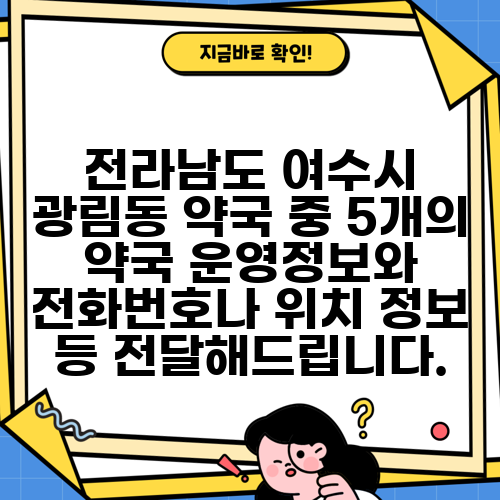 전라남도 여수시 광림동 약국 중 5개의 약국 운영정보와 전화번호나 위치 정보 등 전달해드립니다.
