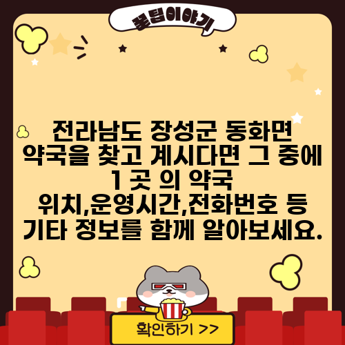 전라남도 장성군 동화면 약국을 찾고 계시다면 그 중에 1 곳 의 약국 위치,운영시간,전화번호 등 기타 정보를 함께 알아보세요.