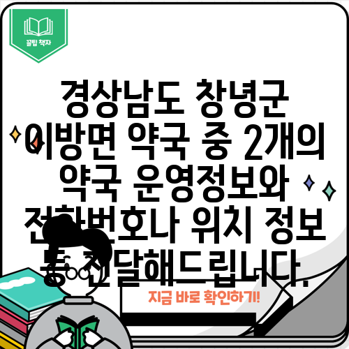 경상남도 창녕군 이방면 약국 중 2개의 약국 운영정보와 전화번호나 위치 정보 등 전달해드립니다.