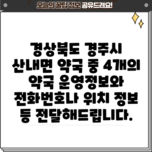 경상북도 경주시 산내면 약국 중 4개의 약국 운영정보와 전화번호나 위치 정보 등 전달해드립니다.
