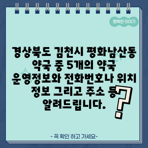 경상북도 김천시 평화남산동 약국 중 5개의 약국 운영정보와 전화번호나 위치 정보 그리고 주소 등 알려드립니다.