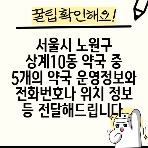 서울시 노원구 상계10동 약국 중 5개의 약국 운영정보와 전화번호나 위치 정보 등 전달해드립니다.