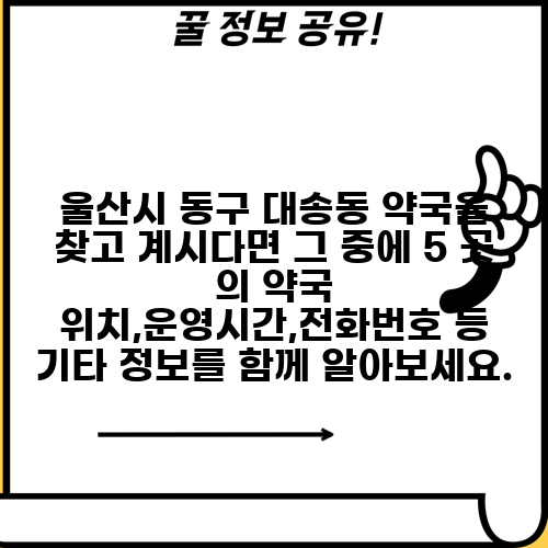 울산시 동구 대송동 약국을 찾고 계시다면 그 중에 5 곳 의 약국 위치,운영시간,전화번호 등 기타 정보를 함께 알아보세요.