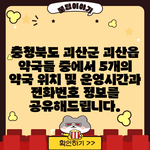 충청북도 괴산군 괴산읍 약국들 중에서 5개의 약국 위치 및 운영시간과 전화번호 정보를 공유해드립니다.