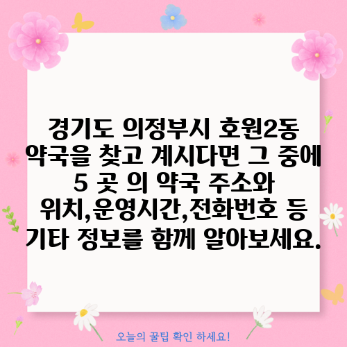 경기도 의정부시 호원2동 약국을 찾고 계시다면 그 중에 5 곳 의 약국 주소와 위치,운영시간,전화번호 등 기타 정보를 함께 알아보세요.