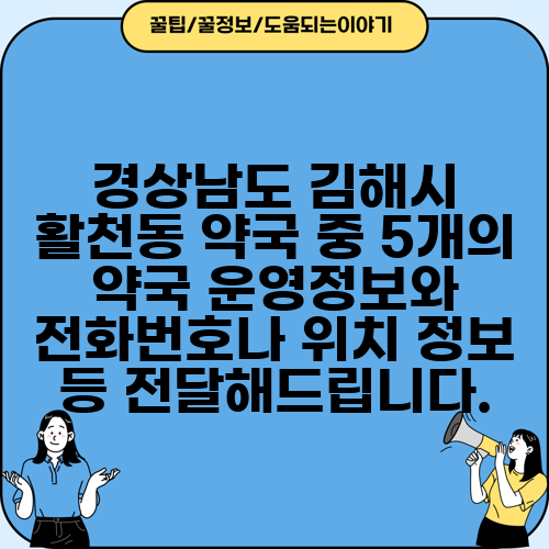 경상남도 김해시 활천동 약국 중 5개의 약국 운영정보와 전화번호나 위치 정보 등 전달해드립니다.