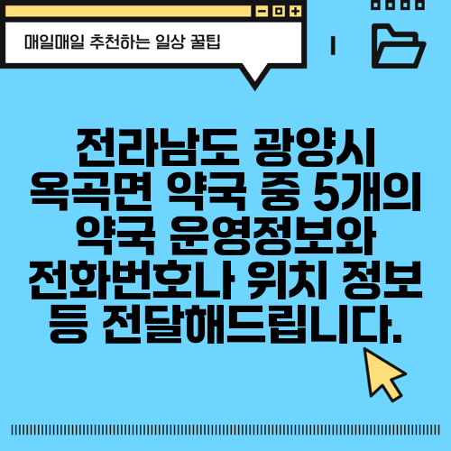 전라남도 광양시 옥곡면 약국 중 5개의 약국 운영정보와 전화번호나 위치 정보 등 전달해드립니다.