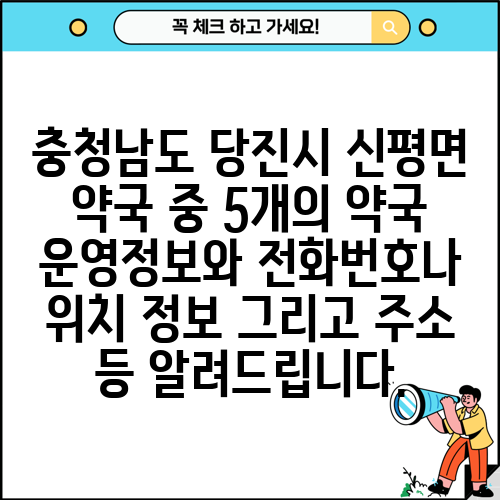 충청남도 당진시 신평면 약국 중 5개의 약국 운영정보와 전화번호나 위치 정보 그리고 주소 등 알려드립니다.