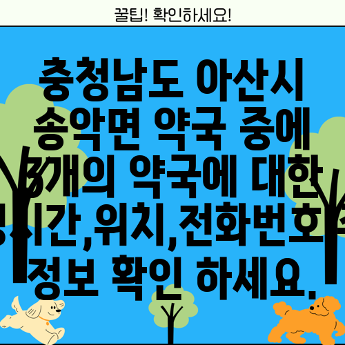 충청남도 아산시 송악면 약국 중에 3개의 약국에 대한 운영시간,위치,전화번호,주소 정보 확인 하세요.