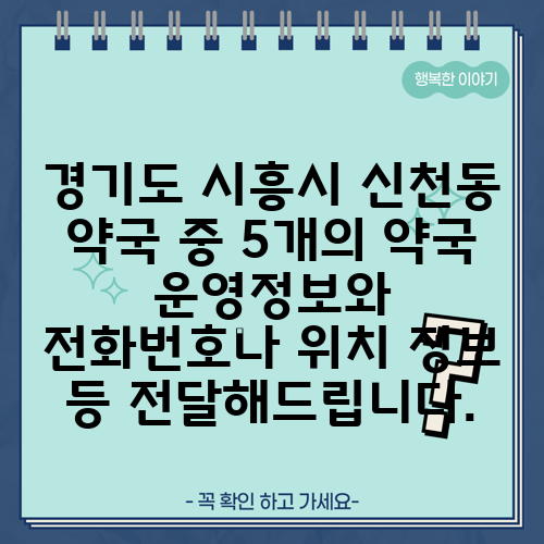 경기도 시흥시 신천동 약국 중 5개의 약국 운영정보와 전화번호나 위치 정보 등 전달해드립니다.