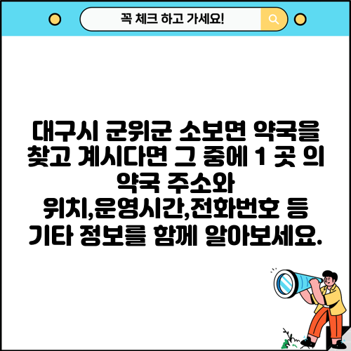 대구시 군위군 소보면 약국을 찾고 계시다면 그 중에 1 곳 의 약국 주소와 위치,운영시간,전화번호 등 기타 정보를 함께 알아보세요.