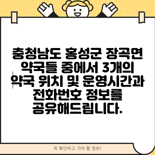 충청남도 홍성군 장곡면 약국들 중에서 3개의 약국 위치 및 운영시간과 전화번호 정보를 공유해드립니다.