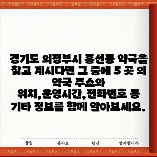 경기도 의정부시 흥선동 약국을 찾고 계시다면 그 중에 5 곳 의 약국 주소와 위치,운영시간,전화번호 등 기타 정보를 함께 알아보세요.