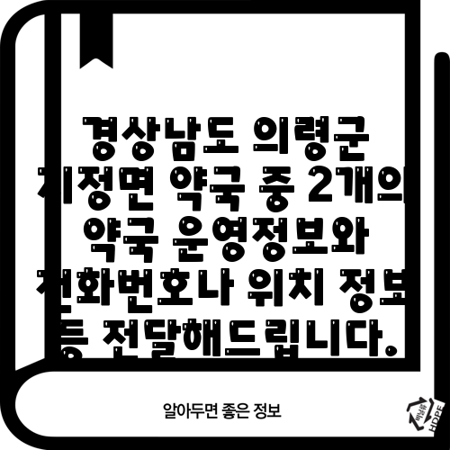 경상남도 의령군 지정면 약국 중 2개의 약국 운영정보와 전화번호나 위치 정보 등 전달해드립니다.