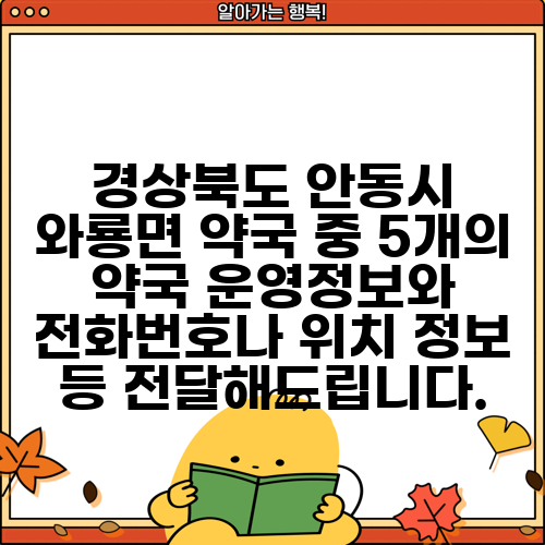 경상북도 안동시 와룡면 약국 중 5개의 약국 운영정보와 전화번호나 위치 정보 등 전달해드립니다.