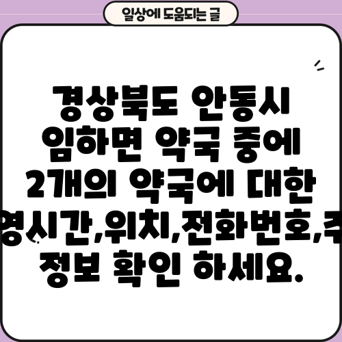 경상북도 안동시 임하면 약국 중에 2개의 약국에 대한 운영시간,위치,전화번호,주소 정보 확인 하세요.