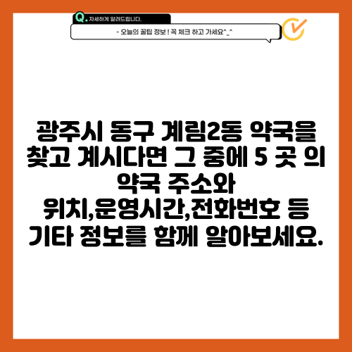 광주시 동구 계림2동 약국을 찾고 계시다면 그 중에 5 곳 의 약국 주소와 위치,운영시간,전화번호 등 기타 정보를 함께 알아보세요.