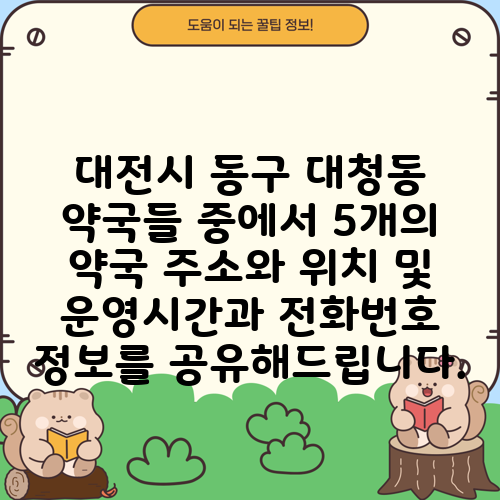 대전시 동구 대청동 약국들 중에서 5개의 약국 주소와 위치 및 운영시간과 전화번호 정보를 공유해드립니다.