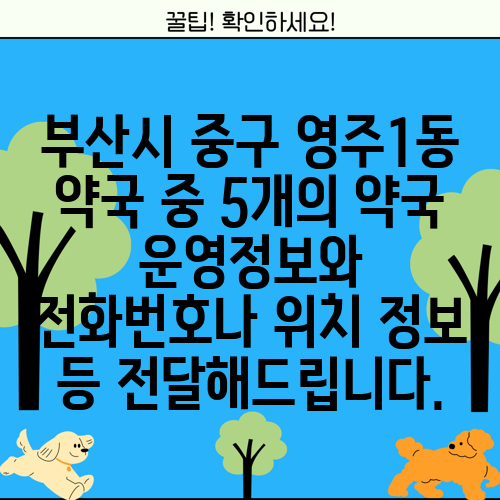 부산시 중구 영주1동 약국 중 5개의 약국 운영정보와 전화번호나 위치 정보 등 전달해드립니다.