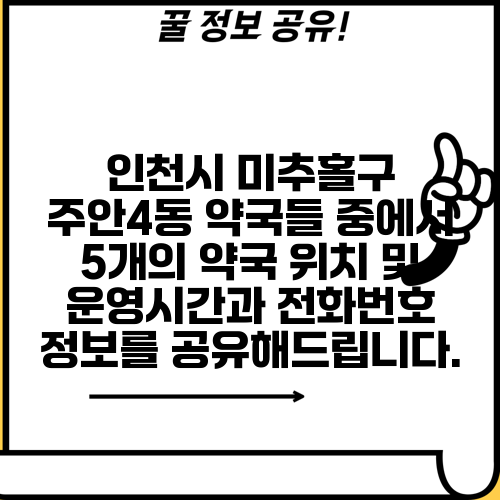 인천시 미추홀구 주안4동 약국들 중에서 5개의 약국 위치 및 운영시간과 전화번호 정보를 공유해드립니다.