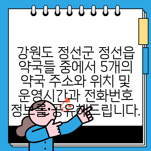 강원도 정선군 정선읍 약국들 중에서 5개의 약국 주소와 위치 및 운영시간과 전화번호 정보를 공유해드립니다.