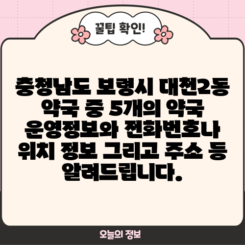 충청남도 보령시 대천2동 약국 중 5개의 약국 운영정보와 전화번호나 위치 정보 그리고 주소 등 알려드립니다.