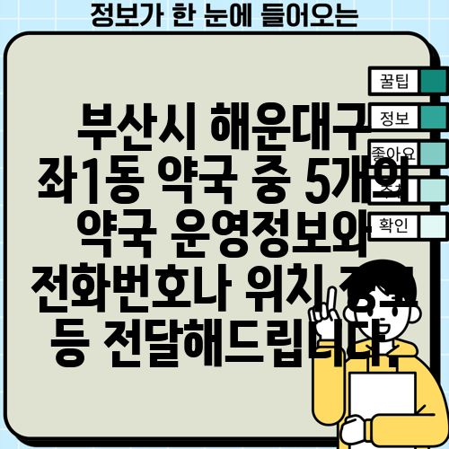 부산시 해운대구 좌1동 약국 중 5개의 약국 운영정보와 전화번호나 위치 정보 등 전달해드립니다.