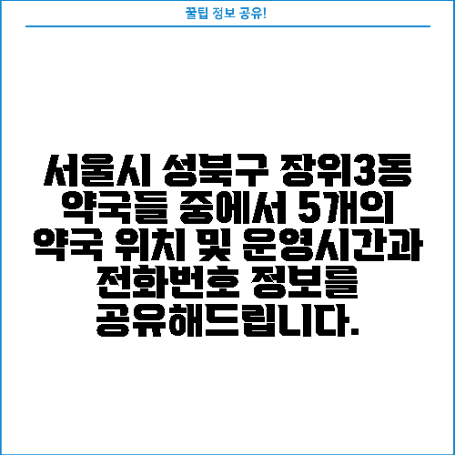 서울시 성북구 장위3동 약국들 중에서 5개의 약국 위치 및 운영시간과 전화번호 정보를 공유해드립니다.