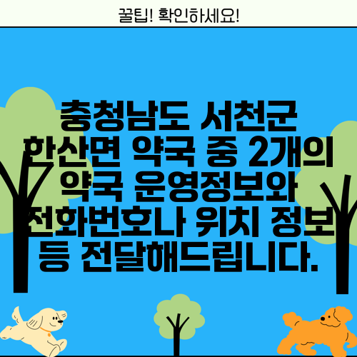 충청남도 서천군 한산면 약국 중 2개의 약국 운영정보와 전화번호나 위치 정보 등 전달해드립니다.
