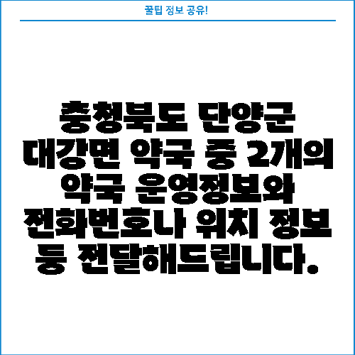 충청북도 단양군 대강면 약국 중 2개의 약국 운영정보와 전화번호나 위치 정보 등 전달해드립니다.