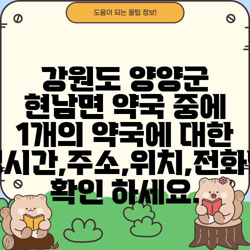 강원도 양양군 현남면 약국 중에 1개의 약국에 대한 운영시간,주소,위치,전화번호 확인 하세요.