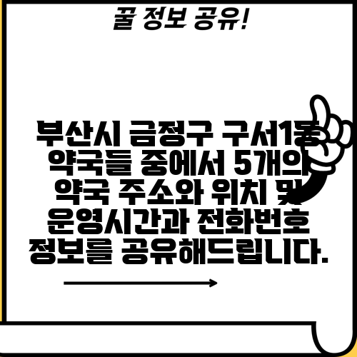 부산시 금정구 구서1동 약국들 중에서 5개의 약국 주소와 위치 및 운영시간과 전화번호 정보를 공유해드립니다.