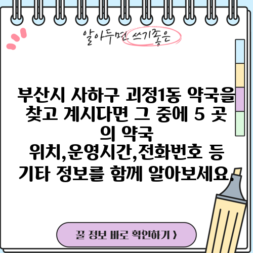 부산시 사하구 괴정1동 약국을 찾고 계시다면 그 중에 5 곳 의 약국 위치,운영시간,전화번호 등 기타 정보를 함께 알아보세요.