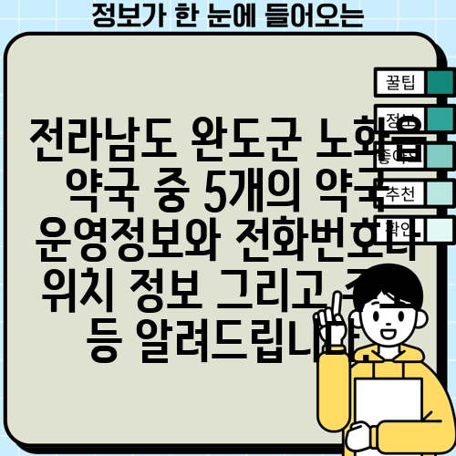 전라남도 완도군 노화읍 약국 중 5개의 약국 운영정보와 전화번호나 위치 정보 그리고 주소 등 알려드립니다.