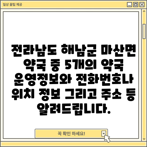 전라남도 해남군 마산면 약국 중 5개의 약국 운영정보와 전화번호나 위치 정보 그리고 주소 등 알려드립니다.