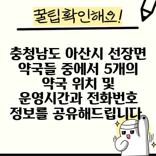 충청남도 아산시 선장면 약국들 중에서 5개의 약국 위치 및 운영시간과 전화번호 정보를 공유해드립니다.