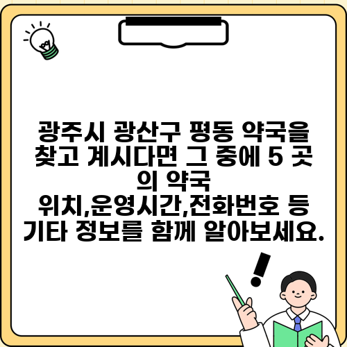 광주시 광산구 평동 약국을 찾고 계시다면 그 중에 5 곳 의 약국 위치,운영시간,전화번호 등 기타 정보를 함께 알아보세요.