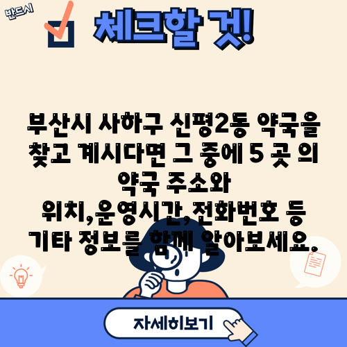 부산시 사하구 신평2동 약국을 찾고 계시다면 그 중에 5 곳 의 약국 주소와 위치,운영시간,전화번호 등 기타 정보를 함께 알아보세요.