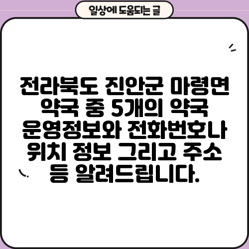 전라북도 진안군 마령면 약국 중 5개의 약국 운영정보와 전화번호나 위치 정보 그리고 주소 등 알려드립니다.