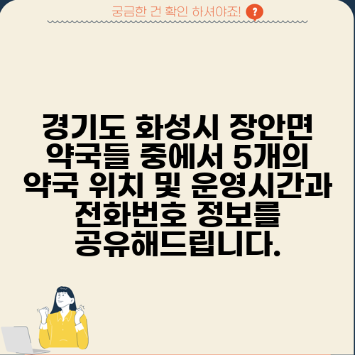 경기도 화성시 장안면 약국들 중에서 5개의 약국 위치 및 운영시간과 전화번호 정보를 공유해드립니다.